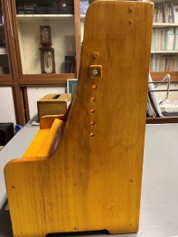 桐を用いた持ち運び式のタブレットスタンド。タブレットが見やすいよう,スタンドの角度を変えられるようにした。また,接合には釘ではなく木ダボを用いた。