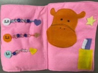 また、ビーズや装飾品を、飲み込まないように毛糸で本から離れないように工夫しました。ふわふわのハートがついているところにも工夫があって、さわって遊んだり、マジックテープで本から離す力を身につけたりできるという工夫をしました。そして、なるべくカラフルになるように材料をそろえました。カラフルなものにすることで、わくわくしたり、見た目に興味がわくように仕上げました。この、絵本は歯みがきの大切さや数かぞえとしても遊びながら学ぶことができ、大きくなっても長く使い続けられるように工夫をしました。