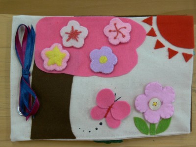 ・季節の花は、ボタンとスナップボタンで付け外しができるようにして、手先の練習になるようにした。