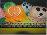 ・アイスクリームの味を色で表現し、果物、お菓子を大きな形にすることで、小さい子どもにも分かりやすくした。
