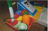 ・買い物ごっこに使う商品に一番力を入れ、フエルトと綿で手作りした。