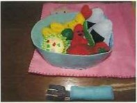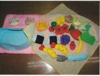 ・幼児が創意工夫して遊びを発展できるように、お弁当箱とフォーク、ふきんも用意した。
