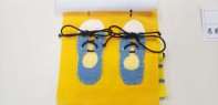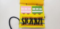作品をつくる中で工夫したことは、幼児が遊ぶときに危なくないように全てフェルトで作ったことです。また、ひもを通す穴がきれいな丸になるように、フェルトの部分部分を切り取って穴あけパンチで開けました。ひもは片付けられるように収納する場所を作りました。「線路を作ろう」のページ(手先が器用になる練習用)と、「靴紐を結ぼう」(難易度の高い靴紐の練習)の2個用意したことも工夫したことの一つです。