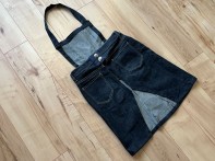 ・ズボンの足の部分の生地を切って、首にかける部分を作った。