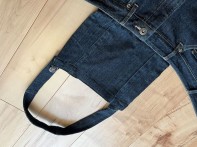 ・ズボンのベルトの部分に、ジーンズの生地を両側に付け足し、右はボタンホールを作り、左はボタン2個を付けた。