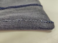 バッグのデザインを考えるとき、リュックに入りきらない教科書や筆箱、水筒など重みのあるものを入れられるしっかりとしたバッグを作りたいと思いました。教科書を入れても中身がばらつかないように、教科書などの大きさを測り、まちをつけ、ぴったり入るサイズにしました。ポケットにははけなくなった思い出のあるデニムを使い、ティッシュや鍵、くしなどを入れることを想定して大きさを決めました。また、肩にもかけられる持ち手の長さにし、デニムの色との調和を考えて色を選びました。内ポケットの縫いしろがものの出し入れをするときにじゃまにならないよう、まつり縫いをして縫い止めました。縫い目を丈夫にするためにまちを二度縫いしたり、布端がほつれないようにジグザグミシンをかけたりすることも作業を通して分かりました。