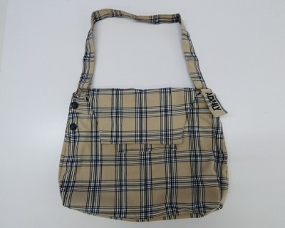 サロペットの衣服の特徴をできるだけ活かし、生地も多く使えるようにデザインを工夫した。そのままの形を利用できる部分と取り外して利用する部分に分けて考え計画した。サロペットの胸の部分はカバンのふたにしたり、2本の肩ひもを取り外して縫いつなげて持ち手にしたり、脇ポケットをそのまま利用して、残った生地で外側にポケットを付けたり、カバンの材料はサロペットをフル活用した。カバンのふたはかぶせるだけなので、外側ポケットにはスナップを付けて入れた物が落ちないように工夫した。