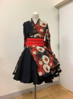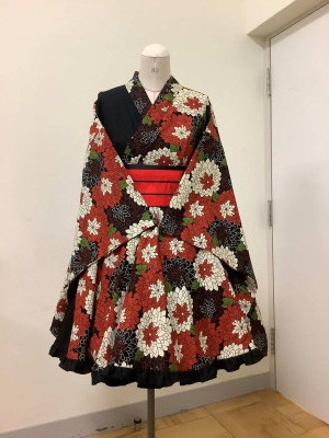 和と洋を組み合わせたデザインを工夫し、ドレスと帯の組み合わせもよく、美しく縫製した。