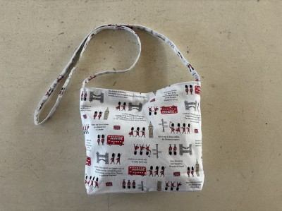 布を使ったサコッシュを作りました。まつり縫いや、マチ作り、マグネットボタンなどを頑張りました。残りの布も無駄なく、巾着袋・ブックカバー・ストラップ・ティッシュカバーを作りました。